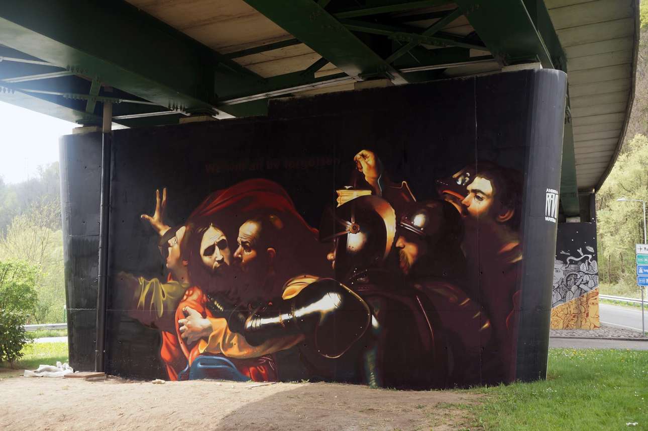 Φωτό: «Η σύλληψη του Ιησού» του Καραβάτζο σε μια γέφυρα στο Βαρέζε. Καλύτερα από το να γράφει «Μαράκι σ’ αγαπώ» και «Θύρα 13», ε;