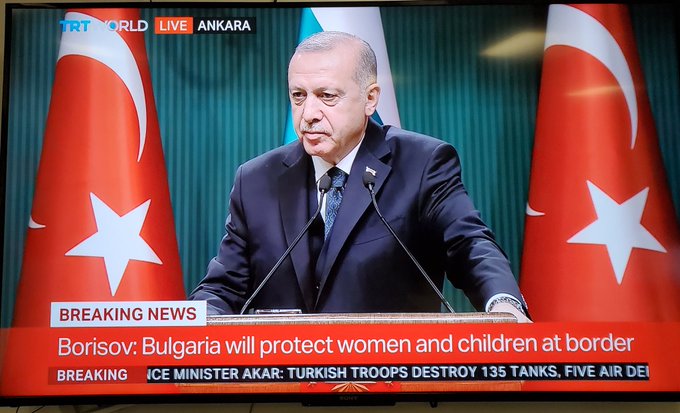Χρησιμοποιώντας την προσφώνηση «φίλε μου Μπόικο», ο Ερντογάν διαβεβαίωσε τον βούλγαρο πρωθυπουργό πως «δεν στέλνει πρόσφυγες στη Βουλγαρία», αποδεικνύοντας έτσι, χωρίς να κρατά ούτε τα προσχήματα, ότι η προώθησή τους στα ελληνοτουρκικά σύνορα είναι σκόπιμη και στρέφεται αποκλειστικά κατά της Ελλάδας.