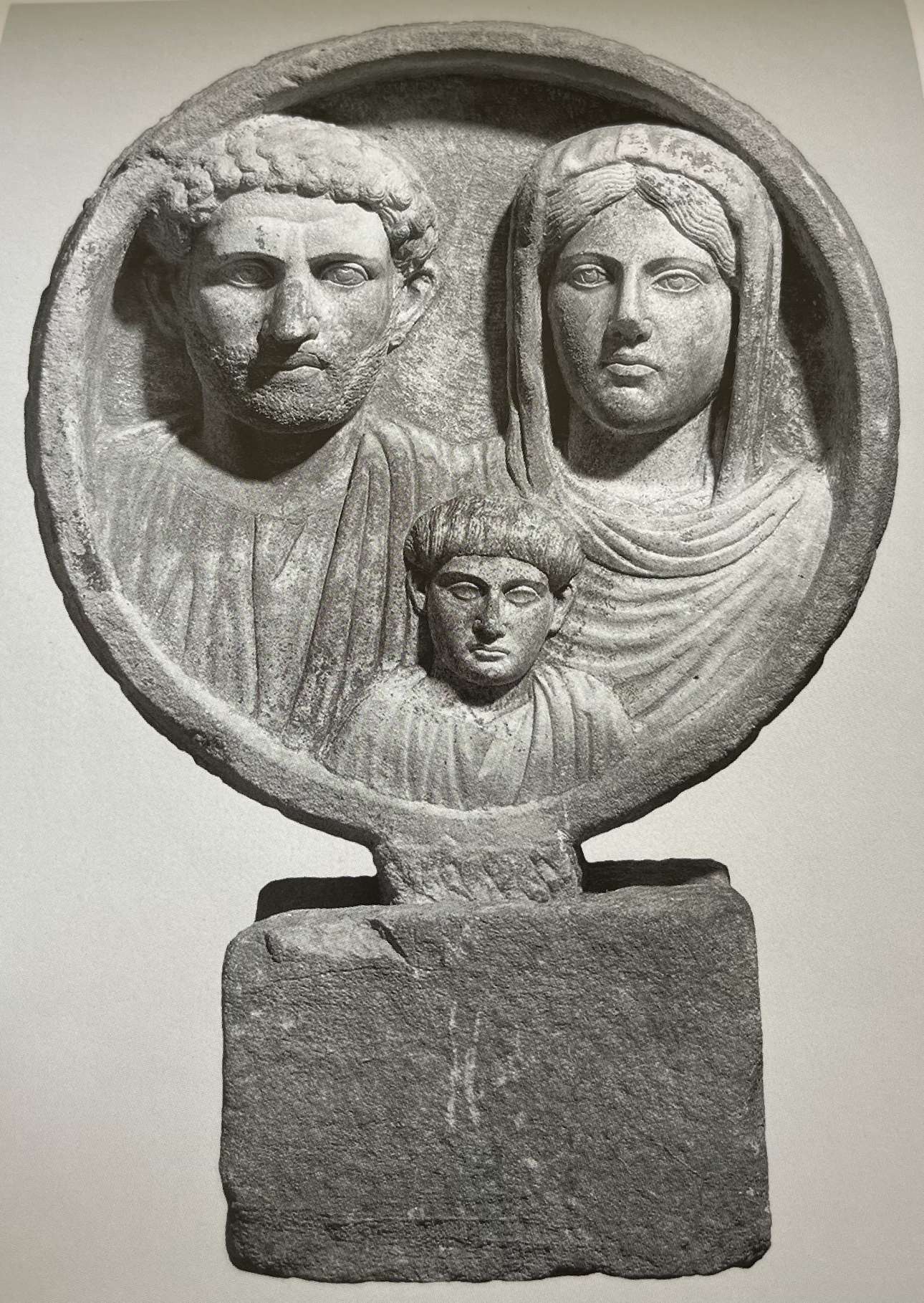 Κυκλικό επιτύμβιο ανάγλυφο από το Παλατιανό με ανδρική και γυναικεία προτομή, καθώς και μορφή παιδιού. Είναι τύπος που εντοπίζεται στη Θεσσαλονίκη και τη Θάσο. Αξιόλογος αριθμός παρόμοιων μνημείων έχουν βρεθεί, εξάλλου, στην περιοχή των Σερρών και στην κοιλάδα του Στρυμόνα.
