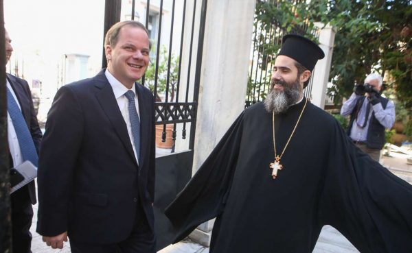 Επί της υποδοχής του υπουργού ήταν πρωτοσύγκελος αρχιμανδρίτης Βαρνάβας Θεοχάρης.