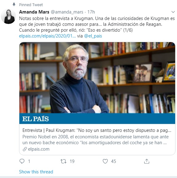 H συνέντευξη τιτλοφορείται «Παρακαλώ, επιτρέψτε μου να πληρώσω περισσότερους φόρους», επικεντρώνοντας στο σημείο που αναδεικνύει ο ίδιος ο Κρούγκμαν με τις απαντήσεις που δίνει και εξηγεί, έτσι, «γιατί η φορολογική ισότητα είναι ο μόνος σωστός τρόπος, ενώ τα fake news είναι ο χειρότερος εχθρός μας».