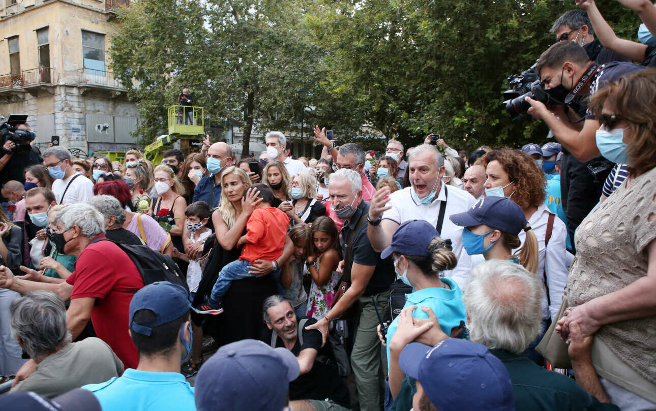 Πλήθος κόσμου περίμενε υπομονετικά στη μεγάλη ουρά που είχε σχηματιστεί από το πρωί στο πεζοδρόμιο επί της οδού Μητροπόλεως για το «τελευταίο αντίο» στον κορυφαίο μουσικοσυνθέτη. Με ένα λουλούδι στο χέρι, συνήθως κόκκινο τριαντάφυλλο ή γαρίφαλο, και τηρώντας όλα τα μέτρα κατά του κορονοϊού, άνθρωποι όλων των ηλικιών παρέμεναν ήσυχοι έως ότου έρθει η σειρά τους για να αποχαιρετήσουν τον Μίκη Θεοδωράκη.