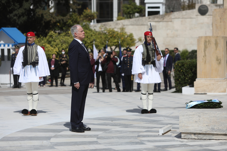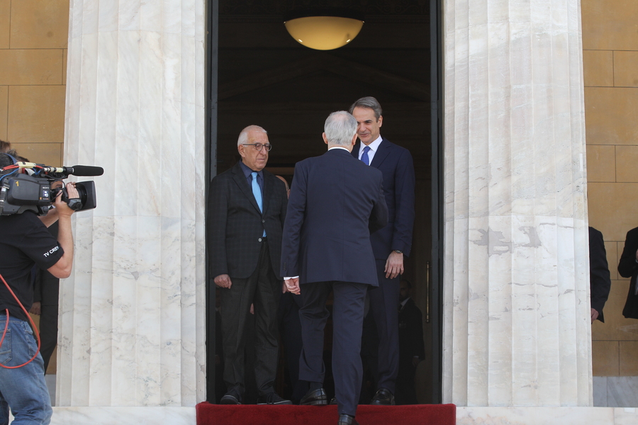 Τον νέο Πρόεδρο της Δημοκρατίας, Κωνσταντίνο Τασούλα υποδέχθηκαν στο Μέγαρο της Βουλής, στην είσοδο του Αγνωστου Στρατιώτη, ο Πρωθυπουργός Κυριάκος Μητσοτάκης και ο Πρόεδρος της Βουλής Νικήτας Κακλαμάνης.