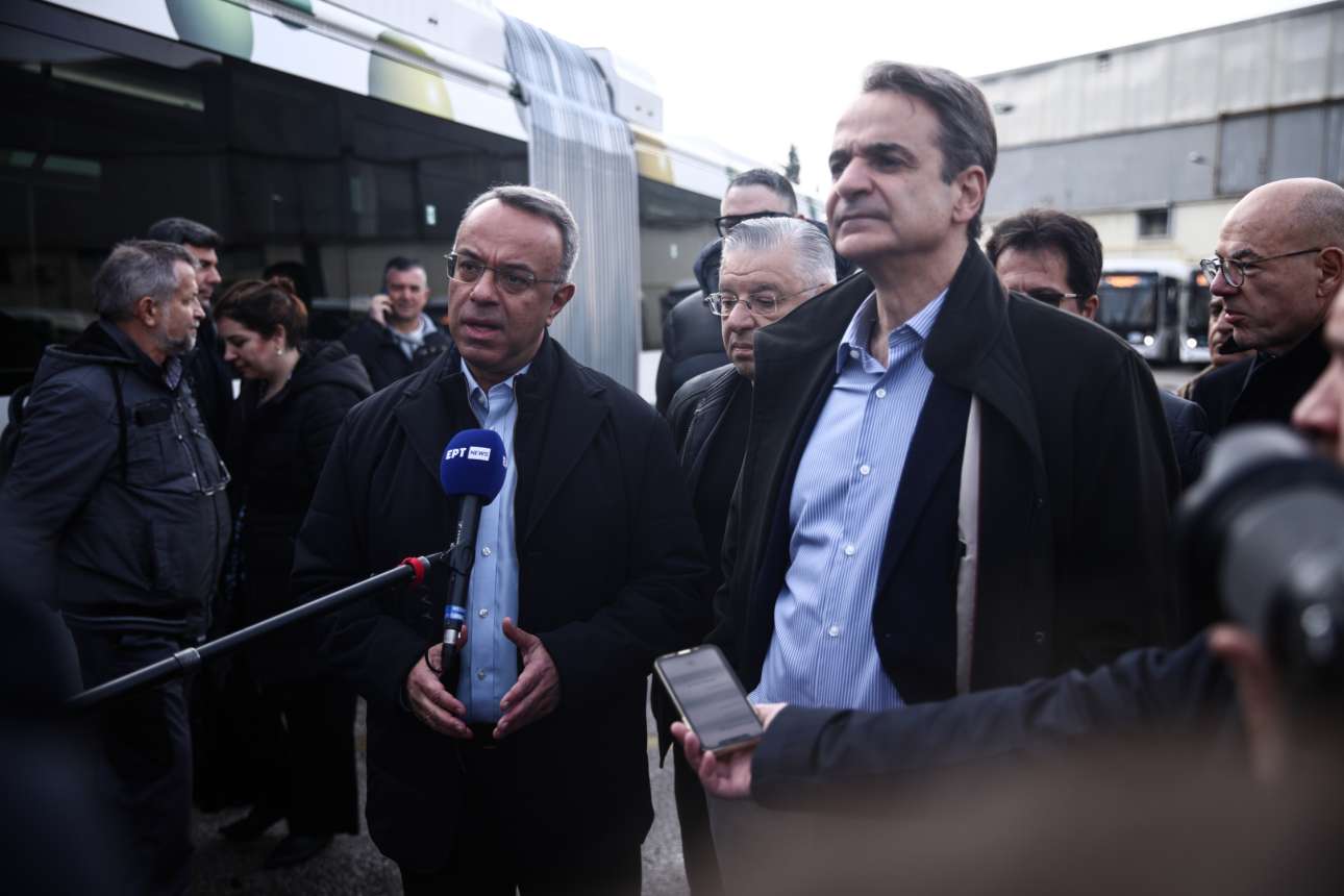 Ο Μητσοτάκης ξανά στο αμαξοστάσιο για τα νέα λεωφορεία – στο πλευρό του ο Σταϊκούρας