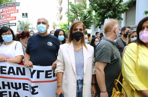 Μαζί του στη συγκέντρωση της ΠΟΕΔΗΝ και άλλοι εκπρόσωποι και βουλευτές του ΣΥΡΙΖΑ, όπως η Ραλλία Χρηστίδου, η Χαρά Καφαντάρη και η Θεοδώρα Αυγέρη. Ολοι τους φορούσαν επιμελώς τις προσταυτικές τους μάσκες, ώστε να προλάβουν τις «κακές γλώσσες» για την παρουσία τους ανάμεσα σε τόσους ανεμβολίαστους.