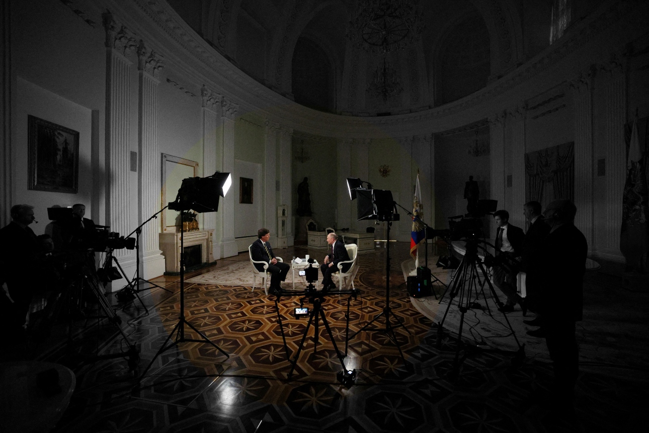 Ο Τάκερ Κάρλσον ανήγγειλε πομπωδώς νωρίτερα αυτή την εβδομάδα τη μετάδοση της συνέντευξης που πήρε από τον ρώσο πρόεδρο. Προβλήθηκε μέσω X (του πρώην Twitter). Η επίσκεψή του στη Μόσχα έτυχε ευρείας κάλυψης σε ρωσικά ΜΜΕ, που δημοσίευσαν φωτογραφικά στιγμιότυπα με τον παρουσιαστή στο αεροδρόμιο ή στο περίφημο θέατρο Μπαλσόι. Πρόκειται για μια περσόνα, έναν τηλε-ιεροκήρυκα περισσότερο από δημοσιογράφο, που ουδέποτε έκρυψε τον θαυμασμό του για τον Πούτιν και είχε πει ότι η προσάρτηση της Κριμαίας από τη Ρωσία το 2014 ήταν σωστή.