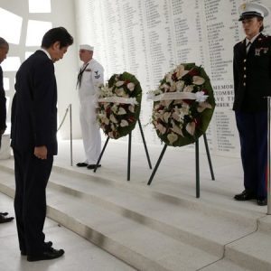 Για τον Αμπε ήταν μια ιστορική στιγμή, καθώς γίνεται ο πρώτος ιάπωνας πρωθυπουργός που επισκέπτεται τον χώρο μνήμης για τα θύματα της ξαφνικής επίθεσης την οποία είχε εξαπολύσει η χώρα του, ως Αυτοκρατορία της Ιαπωνίας, βάζοντας στον πόλεμο και τις ΗΠΑ και οδηγώντας την τελικά στον όλεθρο.