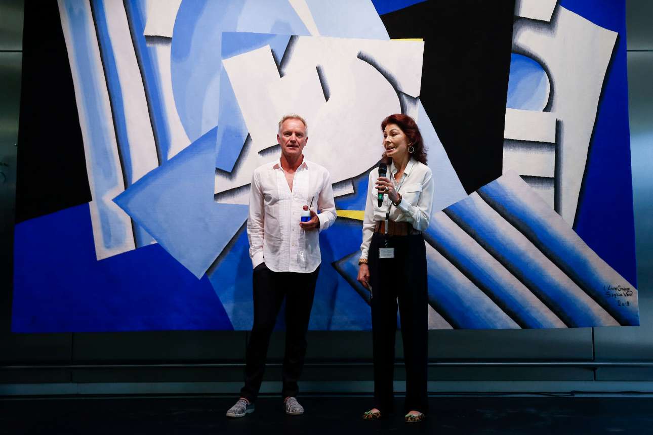 «Άνανδρους και δειλούς» χαρακτήρισε τους ηγέτες του κόσμου ο τραγουδιστής και ηθοποιός Στινγκ από την Αθήνα. Ολα αυτά στα αποκαλυπτήρια ενός υφαντού έργου τέχνης , με ιδιαίτερο συμβολισμό και με την επιγραφή «Αγαπώ την Ελλάδα» που βρήκε στέγη στο Διεθνή Αερολιμένα Αθηνών.