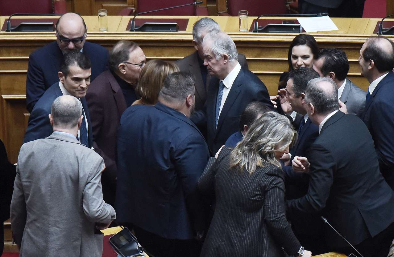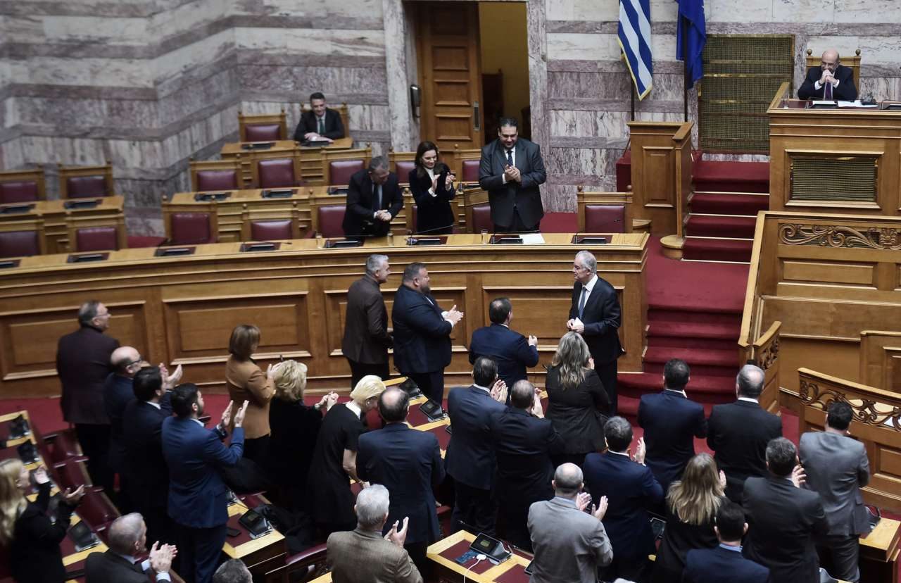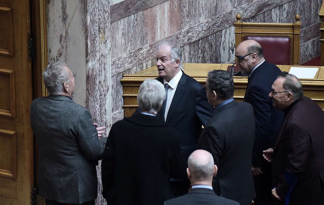 Πριν ανέβει στο βήμα ο κ. Τασούλας είχε σύντομη συνομιλία με τους βουλευτές της Νέας Δημοκρατίας που έσπευσαν να τον συγχαρούν για την επιλογή του στη θέση του Προέδρου της Δημοκρατίας.