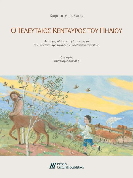 Το Πολιτιστικό Ιδρυμα Ομίλου Πειραιώς παρουσιάζει τη νέα του έκδοση με τίτλο «Ο τελευταίος Κένταυρος του Πηλίου. Μια παραμυθένια ιστορία με αφορμή την Πλινθοκεραμοποιία Ν. & Σ. Τσαλαπάτα στον Βόλο», του δρ αρχαιολόγου-συγγραφέα Χρήστου Μπουλώτη, με ζωγραφιές της Φωτεινής Στεφανίδη.