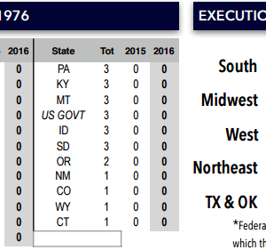 Πέρυσι, συνολικά 28 άτομα καταδικάστηκαν και εκτελέστηκαν μέσω του θεσμού της θανατικής ποινής. Είναι τα λιγότερα θύματα από το 1991 και μετά. Είναι αλήθεια πως τα τελευταία χρόνια παρατηρείται συνεχώς μείωση. Ωστόσο, αυτό δεν γίνεται λόγω της αλλαγής της τακτικής των ΗΠΑ σε αυτό το ζήτημα, όσο γιατί δεν υπάρχουν τα χρήματα! Το Οχάιο δεν έκανε καμία εκτέλεση καταδικασμένου σε θάνατο πέρυσι και έκανε, μόλις, μία το 2014 εξαιτίας έλλειψης κονδυλίων για προμήθειες χημικών για τις ενέσεις. Οι εκτελέσεις έχουν ματαιωθεί για το 2017. Ενα 2017, μέσα στο οποίο έχουν προγραμματιστεί 11 εκτελέσεις (δύο περισσότερες από φέτος, δηλαδή).