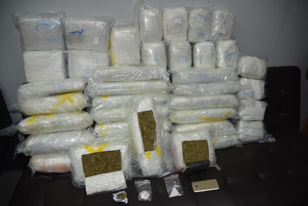 Ειδικότερα, όπως ανακοίνωσε η ΕΛ.ΑΣ. έπειτα από επιχείρηση που διεξήχθη τις πρώτες πρωινές ώρες της 23ης Ιανουαρίου, εντοπίστηκε ο 36χρονος και σε έρευνα που έγινε στο σπίτι του, με τη συνδρομή του αστυνομικού σκύλου, βρέθηκαν και κατασχέθηκαν 38 συσκευασίες κάνναβης, συνολικού βάρους 37 κιλών και 35 γραμμαρίων, και δύο συσκευασίες κοκαΐνης συνολικού βάρους 12 γραμμαρίων.