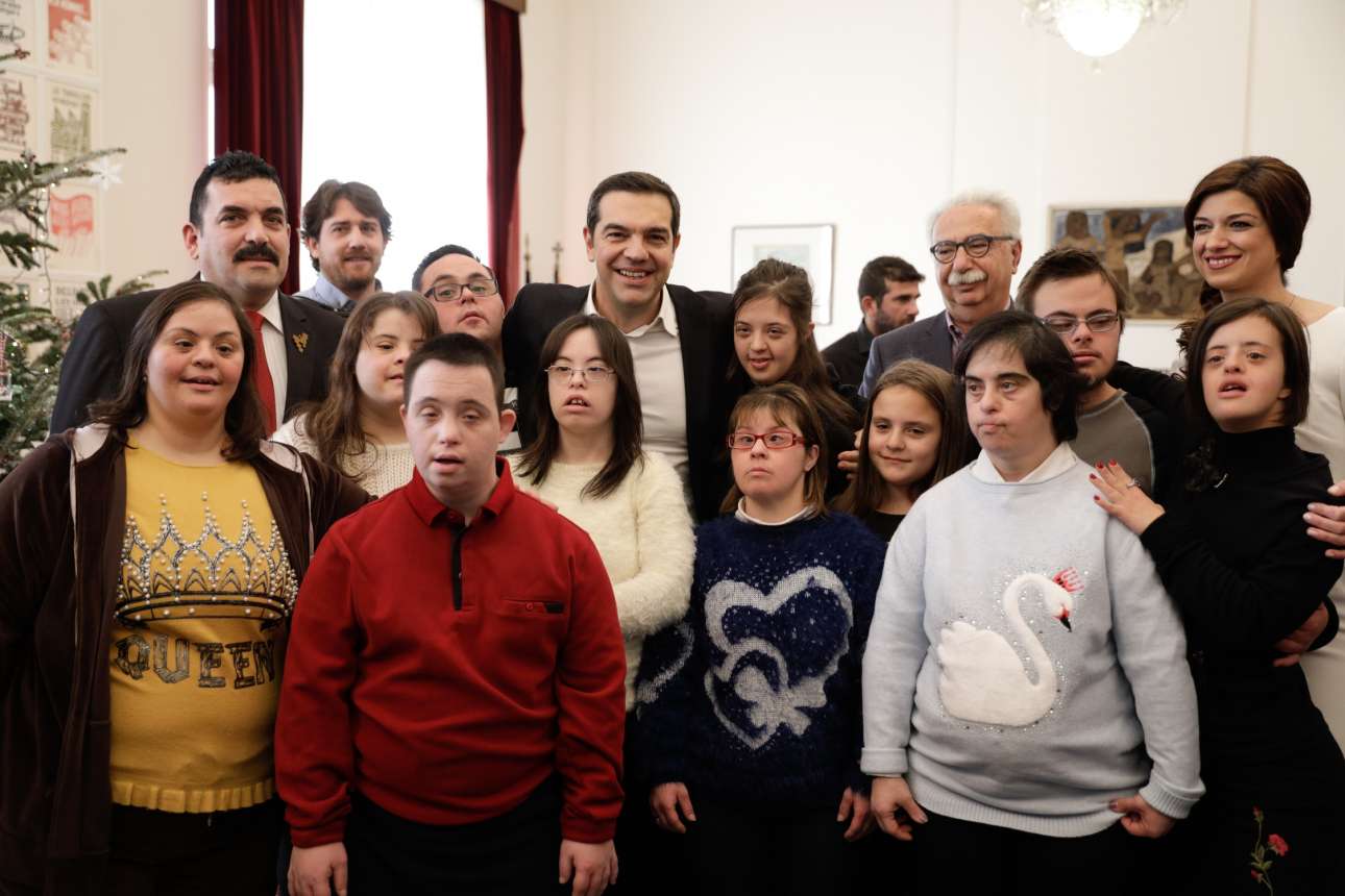 Ο Αλέξης Τσίπρας, το πρωί του Σαββάτου άκουσε τα πρωτοχρονιάτικα κάλαντα από τα παιδιά του συλλόγου Συνδρόμου Down Ελλάδας.