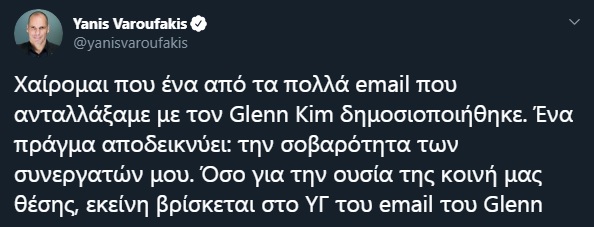 Η επιστολή Γκλεν Κιμ στον Γιάνη Βαρουφάκη