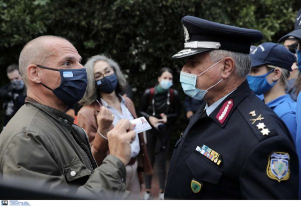 «Παραβιάζετε το Σύνταγμα, σταματώντας βουλευτές», επαναλάμβανε μονότονα στους αστυνομικούς και τον επικεφαλής αξιωματικό, ο Γιάνης Βαρουφάκης επιδεικνύοντας την βουλευτική του ταυτότητα.