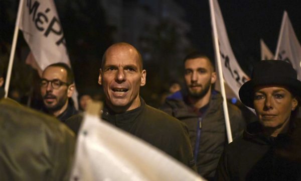 O Βαρουφάκης στην πορεία για το Πολυτεχνείο, «ξεπλένοντας» τους χουντικούς