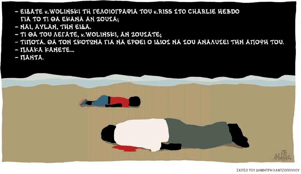 Σε μια παραλία κείτονται νεκροί ο Αϊλάν και ο περίφημος σκιτσογράφος Βολίνσκι που δολοφονήθηκε στην τρομοκρατική επίθεση στο Charlie Hebdo πριν από ακριβώς ένα χρόνο. Ο Αϊλάν τον ρωτάει τι θα έλεγε στον συνάδελφό του που είχε την έμπνευση για το σκίτσο, και ο Βολίνσκι απαντά πως θα τον σκότωνε για να πάει, να συναντήσει το αγόρι και να του εξηγήσει την άποψή του. Για να καταλήξει με το πικρό «πλάκα κάνετε;», «πάντα».