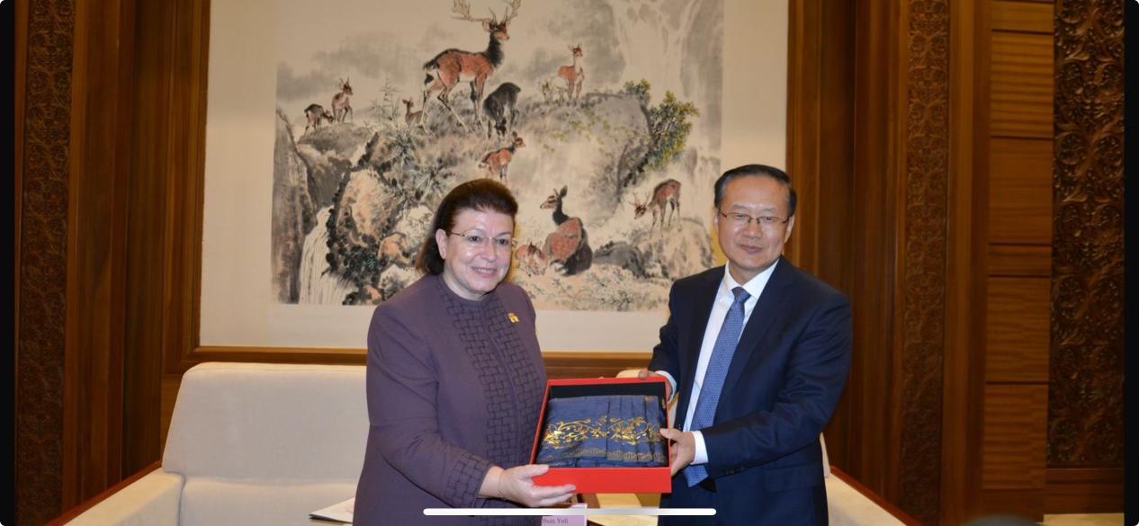 Η υπουργός εξήρε το υψηλό επίπεδο που χαρακτηρίζει τις πολιτιστικές σχέσεις ανάμεσα τις δύο χώρες και οι οποίες έχουν οδηγήσει στην παραγωγή απτών αποτελεσμάτων. Η Λίνα Μενδώνη υπογράμμισε τη δυνατότητα εμβάθυνσης, ανάπτυξης και εξέλιξης της πολιτιστικής συνεργασίας, καθώς οι δύο χώρες δικαιωματικά κατέχουν κορυφαία θέση στο διάλογο των πολιτισμών, δίνοντας έμφαση στην αμοιβαία επωφελή προαγωγή της συνεργασίας στο πλαίσιο διεθνών οργανισμών, όπως η UNESCO. Ελλάδα και Λαϊκή Δημοκρατία της Κίνας έχουν κυρώσει τις συμβάσεις της UNESCO για την προστασία των πολιτιστικών αγαθών, της πολιτιστικής πολυμορφίας, της άυλης πολιτιστικής κληρονομιάς και μπορούν να εντείνουν τη συνεργασία τους στους τομείς αυτούς και ιδίως στο ζήτημα του επαναπατρισμού παρανόμως διακινηθέντων πολιτιστικών αγαθών και του παράνομου εμπορίου αρχαιοτήτων.