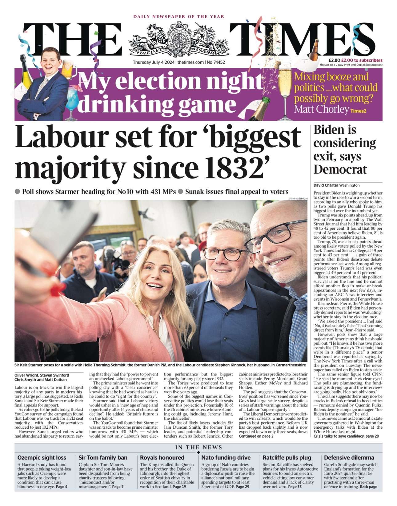 «Είναι ώρα για αλλαγή, δηλαδή είναι η ώρα για τους Εργατικούς», σημείωσε σε κεντρικό της άρθρο η εφημερίδα, η οποία επεσήμανε πως ο Στάρμερ άλλαξε προς το καλύτερο το κόμμα του. «Οι δημοκρατίες χρειάζονται την αλλαγή», σημείωσε επίσης η εφημερίδα.