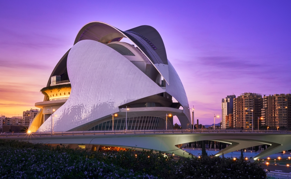 Οταν ο Σαντιάγο Καλατράβα επέστρεψε στη Βαλένθια της Ισπανίας για να εγκαινιάσει την Πόλη των Τεχνών και των Επιστημών, ένα πολιτιστικό συγκρότημα μεταμφιεσμένο σε «στολίσκο εξωγήινων διαστημοπλοίων», τον υποδέχθηκαν με κάποιον σκεπτικισμό. Το κυριότερο από αυτά τα κτίρια, το «Μέγαρο Τεχνών Βασίλισσα Σοφία», είναι η ψηλότερη όπερα στον κόσμο, καθώς υψώνεται μέσα από μια λίμνη νερού σε ύψος 75 μέτρων. Στο εσωτερικό του υπάρχουν τέσσερις αίθουσες για όπερα, μουσική, μπαλέτο και θέατρο, με την καθεμία να συνδέεται με έναν καταπράσινο μεσογειακό κήπο μέσω πληθώρας διαδρόμων.