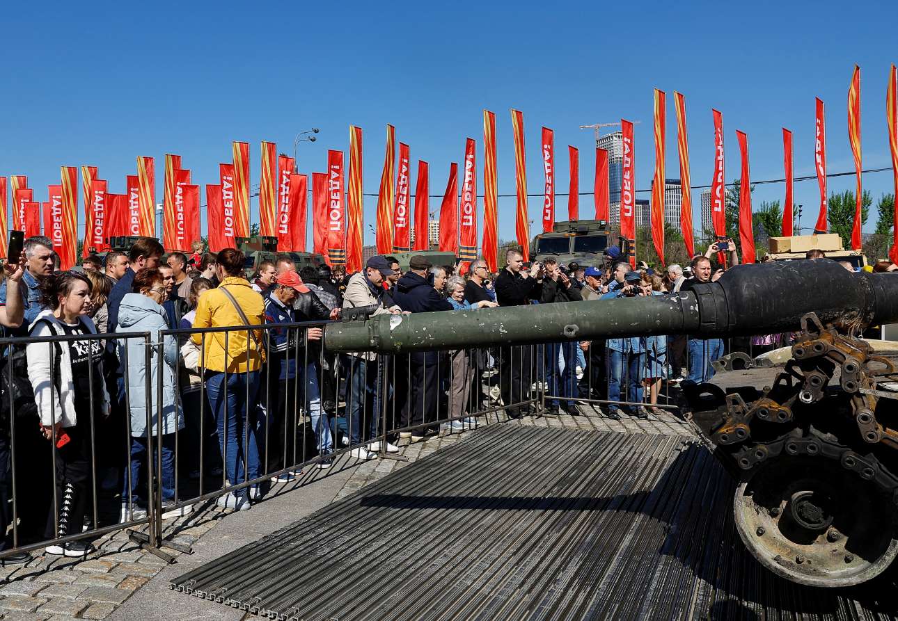 Η έκθεση, που είχε σκοπό να ενισχύσει τον ισχυρισμό της Ρωσίας ότι πολεμά ενάντια στη συλλογική δύναμη της Δύσης στην Ουκρανία, πραγματοποιήθηκε έξω από ένα μουσείο αφιερωμένο στη σοβιετική νίκη επί της ναζιστικής Γερμανίας το 1945. Ο συνειρμός είναι προφανής.