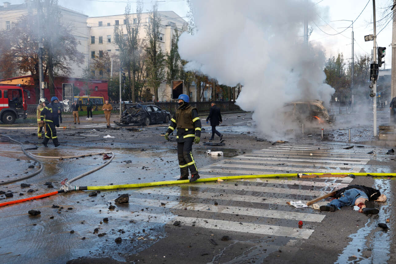 Several missile strikes in the center of Kyiv. Burning cars with people who were commuting to work. The strike was deliberately carried out during rush hour on a busy street to inflict maximum losses and intimidate. A pure act of terrorism. pic.twitter.com/KaOwUSMZio