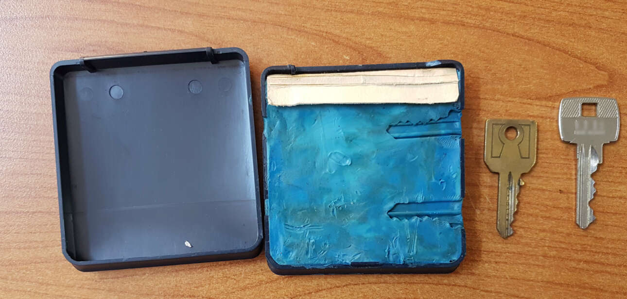 Μία (1) πλαστελίνη με αποτυπώματα δύο (2) πλευρών κλειδιού οικίας
