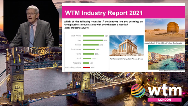 Η πανδημία αντιμετωπίζεται σαν μια επανεκκίνηση που θα επηρεάσει θετικά τη βιωσιμότητα του τουριστικού τομέα, τόνισε μεταξύ άλλων ο Σάιμον Πρες, Διευθυντής της Reed Travel Exhibition, διοργανωτών της έκθεσης, προλογίζοντας το Συμβούλιο Υπουργών 2021 του Παγκόσμιου Οργανισμού Τουρισμού (ΠΟΤ), σε συνεργασία με το Παγκόσμιο Συμβούλιο Τουρισμού και Ταξιδίων (WTTC).
