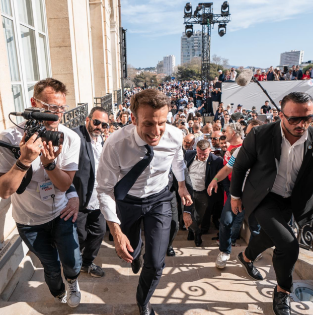 Τώρα «επέστρεψε» ως ένας υπερδραστήριος υποψήφιος, ο οποίος όμως παράλληλα είναι και χαλαρός, αποπνέοντας μια αίσθηση ότι δεν ανησυχεί και τόσο για το αποτέλεσμα του β’ γύρου των προεδρικών εκλογών –η αλήθεια είναι ότι οι δημοσκοπήσεις τού δίνουν ένα σχετικά ασφαλές προβάδισμα έναντι της Μαρίν Λεπέν (στην περιοχή του 55%-45%) καθώς οι ψηφοφόροι του Ζαν Λικ Μελανσόν δεν τάσσονται μεν μαζικά υπέρ του προέδρου (33,4%), αλλά προτιμούν το λευκό ή την αποχή που βολεύει αυτόν που προηγείται.