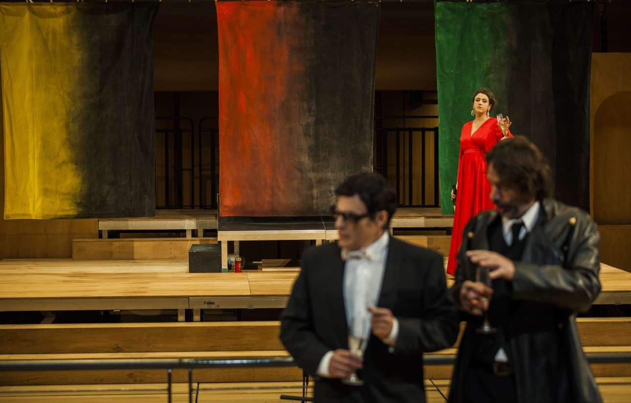 Έφτασα στην Εναλλακτική Σκηνή με μεγάλο ενδιαφέρον για να δω μια οπερατική παράφραση με θέμα το χρέος. Είναι εξάλλου στην αποστολή μιας τέτοιας σκηνής, με τον πειραματισμό και την τόλμη στο κυτταρικό αποτύπωμά της, να δοκιμάζει όρια. Και ομολογώ ήμουν εντελώς απροετοίμαστη να βρεθώ επί σχεδόν τρεις ώρες να ακούω τους εξαιρετικούς ερμηνευτές να τραγουδούν λόγια ενός λιμπρέτου βυθισμένου σε κλισέ, στερεότυπα και κατασκευές εθνικής υπεροχής που μας απαλλάσσουν από ευθύνες. Πλακίτσες, εύκολοι συνειρμοί, μελό συναισθηματισμοί για να εκβιάσουν μια ταύτιση, υπεραπλουστεύσεις σε βαθμό αφέλειας. Σαν να έβλεπα ένα πάνελ του Γιώργου Αυτιά να μαλώνει και να εξηγεί γιατί φτάσαμε ως εδώ, ο κάθε πολιτικός από τη δική του πλευρά. Το κείμενο κενό έστω μιας θέσης, μιας στάσης, ένα σκανάρισμα τίτλων λαϊκίστικης φόρτισης από όλο το πολιτικό φάσμα. Χωρίς κλείσιμο του ματιού, χωρίς υπαινιγμούς – είναι χαρακτηριστικό ότι αν και μας βομβάρδιζε με φράσεις όταν αφηνόταν η ορχήστρα να παίζει μόνη, διαβάζαμε στις οθόνες εξηγήσεις για αυτό που βλέπουμε, σαν λήμματα στη Wikipedia.