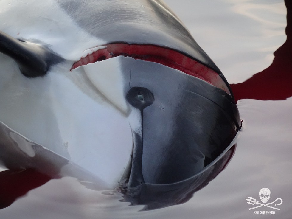 Τις εικόνες κατέγραψαν 18 μέλη της οργάνωσης Sea Shepherd που βρέθηκαν στο σημείο για να διαμαρτυρηθούν για τη βάρβαρη καθιερωμένη δολοφονία των δελφινιών στην περιοχή. Στις φωτογραφίες εμφανίζονται ακόμα και μικρά παιδιά που βοηθούν τους κυνηγούς κομματιάζοντας χωρίς έλεος τα όμορφα θηλαστικά.