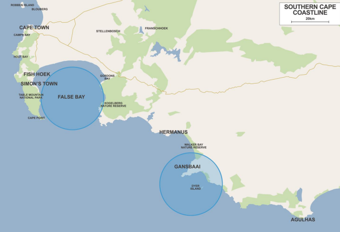 Οι λευκοί καρχαρίες της Νότιας Αφρικής, έγιναν γνωστοί παγκοσμίως για τον στρατηγικό τρόπο που κυνηγούν. Πρωταγωνίστησαν σε πολλά ντοκιμαντέρ συμπεριλαμβανομένου του «Planet Earth» του BBC.
