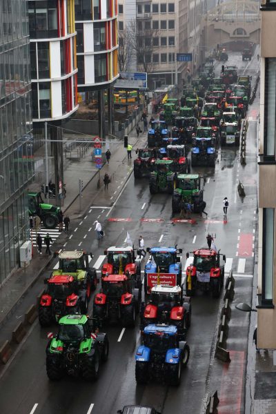 Περίπου 300 τρακτέρ συγκεντρώθηκαν έξω από το κτίριο του Συμβουλίου της ΕΕ στις Βρυξέλλες το μεσημέρι της Δευτέρας, τη στιγμή που συνεδρίαζαν σε αυτό οι υπουργοί Γεωργίας της Ενωσης, και ενώ 900 τρακτέρ, συνολικά, είχαν παραλύσει την βελγική πρωτεύουσα.