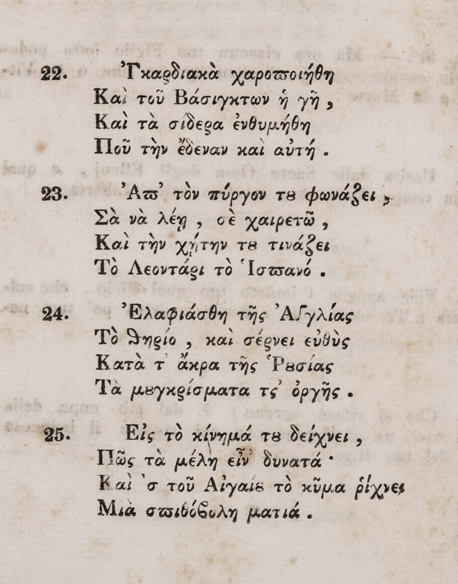 Τα αρχαιοελληνικά ιδεώδη της ελευθερίας και της δημοκρατίας δημιούργησαν ισχυρούς δεσμούς μεταξύ της Αμερικής και των Ελλήνων επαναστατών, που αποτυπώνονται και στην 22η στροφή του Υμνου εις την Ελευθερία του Διονύσιου Σολωμού (έκδοση 1823, εκτύπωση Μεσολόγγι, τυπογραφείο Μεσθενέως).