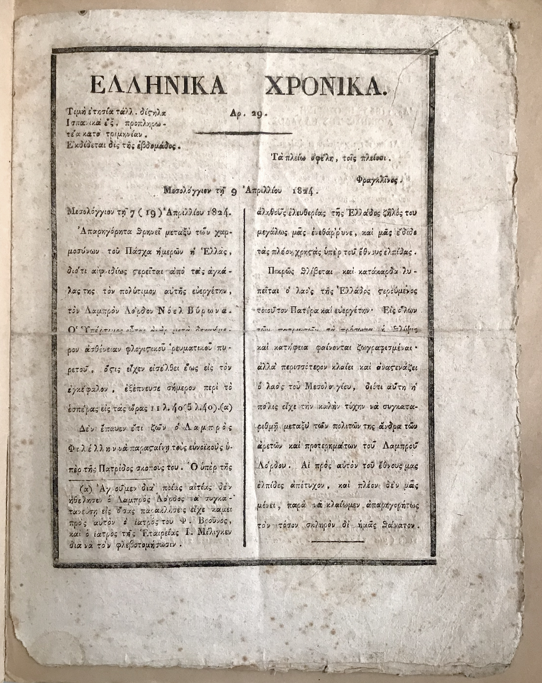 Η σκληρότητα του πολέμου, ειδικά η σφαγή της Χίου, και ο θάνατος του Λόρδου Βύρωνα στο Μεσολόγγι ενέπνευσαν πολλούς νέους Αμερικανούς να συνταχθούν με τους Έλληνες επαναστάτες. Παρά την πολιτική της ουδετερότητας των Ηνωμένων Πολιτειών, πολλοί ιδιώτες Αμερικανοί εργάστηκαν για την αποστολή πόρων – χρημάτων, οπλισμού και φαρμάκων – στην Ελλάδα, και μια χούφτα Αμερικανοί φιλέλληνες ταξίδεψαν κιόλας προκειμένου να πολεμήσουν στο πλευρό των Ελλήνων. Ο Νεοϋορκέζος George Jarvis έγινε αντιστράτηγος στις ελληνικές δυνάμεις, γνωστός ως «Καπετάν Ζέρβης». Στο σύνταγμά του υπηρετούσε επίσης ο Jonathan Pekham Miller από το Βερμόντ. Ο πιο σημαντικός από τους Αμερικανούς Φιλέλληνες όμως ήταν ο Samuel Gridley Howe, ένας γιατρός από τη Βοστώνη που ήρθε στην Ελλάδα μετά την αποφοίτησή του από το Χάρβαρντ το 1824. Ο Howe υπηρέτησε ως επικεφαλής χειρουργός του ελληνικού στρατού πριν επιστρέψει στη Βοστώνη για να αναλάβει τη διοίκηση της Σχολής Τυφλών Perkins, αλλά έμεινε για πάντα αφοσιωμένος στην Ελλάδα και μάλιστα επέστρεψε το 1866 για να συνδράμει την εξέγερση των Κρητικών – το σημείο όπου κλείνει η έκθεση. Και οι τρεις έχουν αφήσει εκτενείς αναφορές για τις δραστηριότητές τους στην Ελλάδα. Εκτίθενται τα ημερολόγια του Jarvis και επιστολές του Howe στον Αγγλο George Finlay (από τα αρχεία της Βρετανικής Αρχαιολογικής Σχολής).