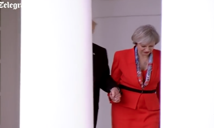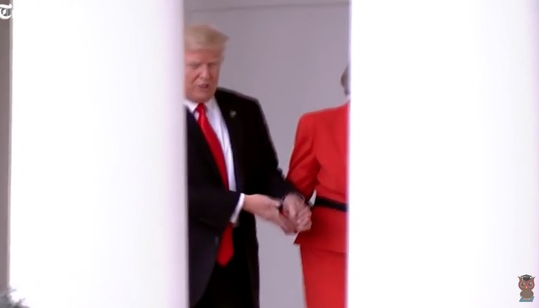 Παρόλα αυτά, η έκπληξη της Μέι ήταν μεγάλη όταν ο Τραμπ, της άρπαξε το χέρι και της το κράτησε για δευτερόλεπτα, σε μία άκρως υποτιμητική κίνηση, δίνοντάς και δύο «σκαμπίλια» στην παλάμη, την στιγμή που περπατούσαν στον εξωτερικό διάδρομο του Λευκού Οίκου, μπροστά σε κάμερες, φωτορεπόρτερ και δημοσιογράφους. Τόσο που ήθελε αμέσως να τρέξει να πάρει τηλέφωνο τον σύζυγό της, Φίλιπ, για να του εξηγήσει τι είχε συμβεί.