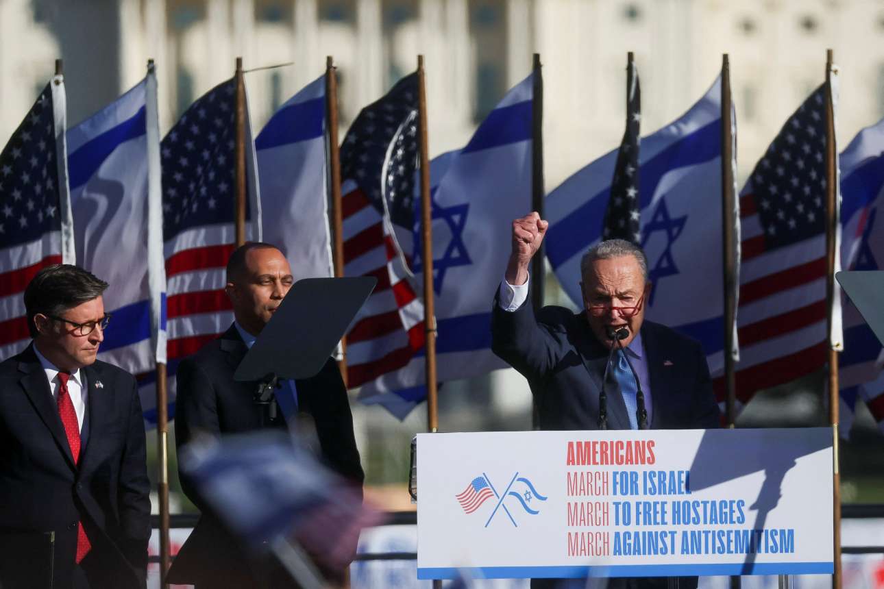 Τριακόσιες χιλιάδες άνθρωποι συγκεντρώθηκαν από όλες τις ΗΠΑ στην Ουάσινγκτον, την Τρίτη, ζητώντας την απελευθέρωση των ομήρων που κρατούνται στη Γάζα και την συντριβή της Χαμάς.