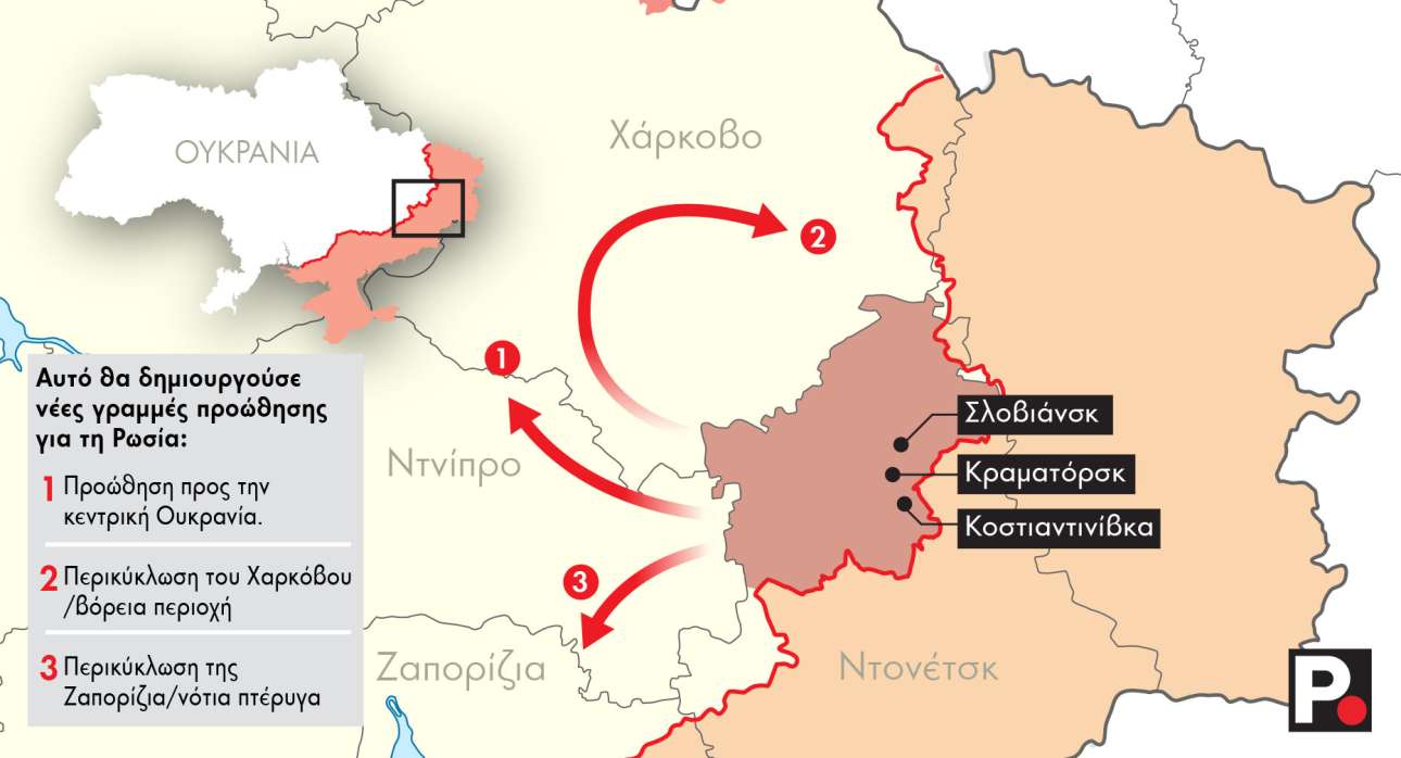 Από τότε, οι επιχειρήσεις της Ρωσίας -από την εννέαμηνη μάχη για το Μπαχμούτ μέχρι την τρέχουσα επίθεση στο Ποκρόφσκ και στο Τορέτσκ- έχουν κατευθυνθεί τελικά στην Κ0στιαντινίβκα, την Ντρουζκίβκα, το Κραματόρσκ και το Σλοβιάνσκ.