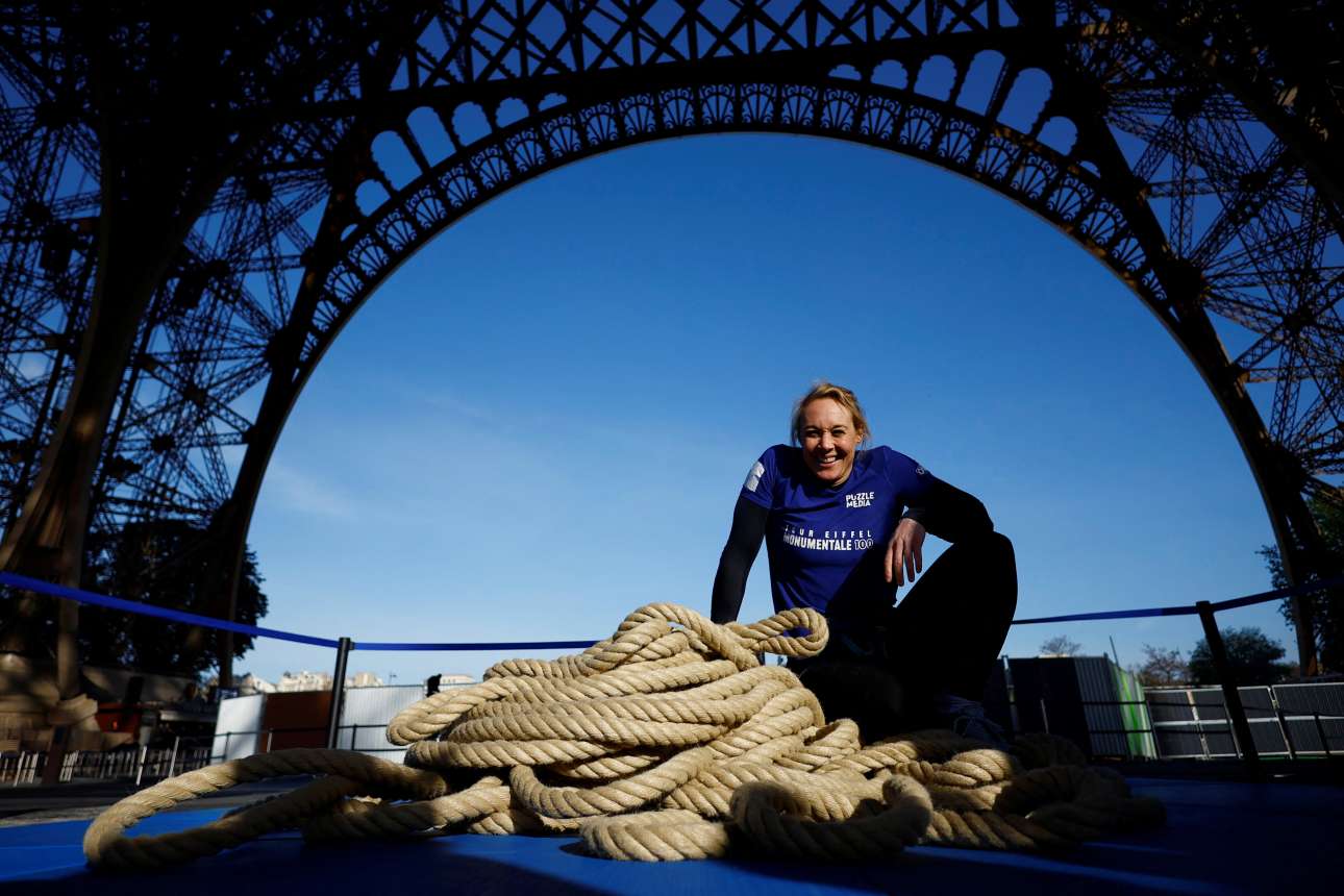 Μια Γαλλίδα έσπασε το παγκόσμιο ρεκόρ αναρρίχησης με σχοινί, την Τετάρτη, φτάνοντας στον δεύτερο όροφο του Πύργου του Αϊφελ.