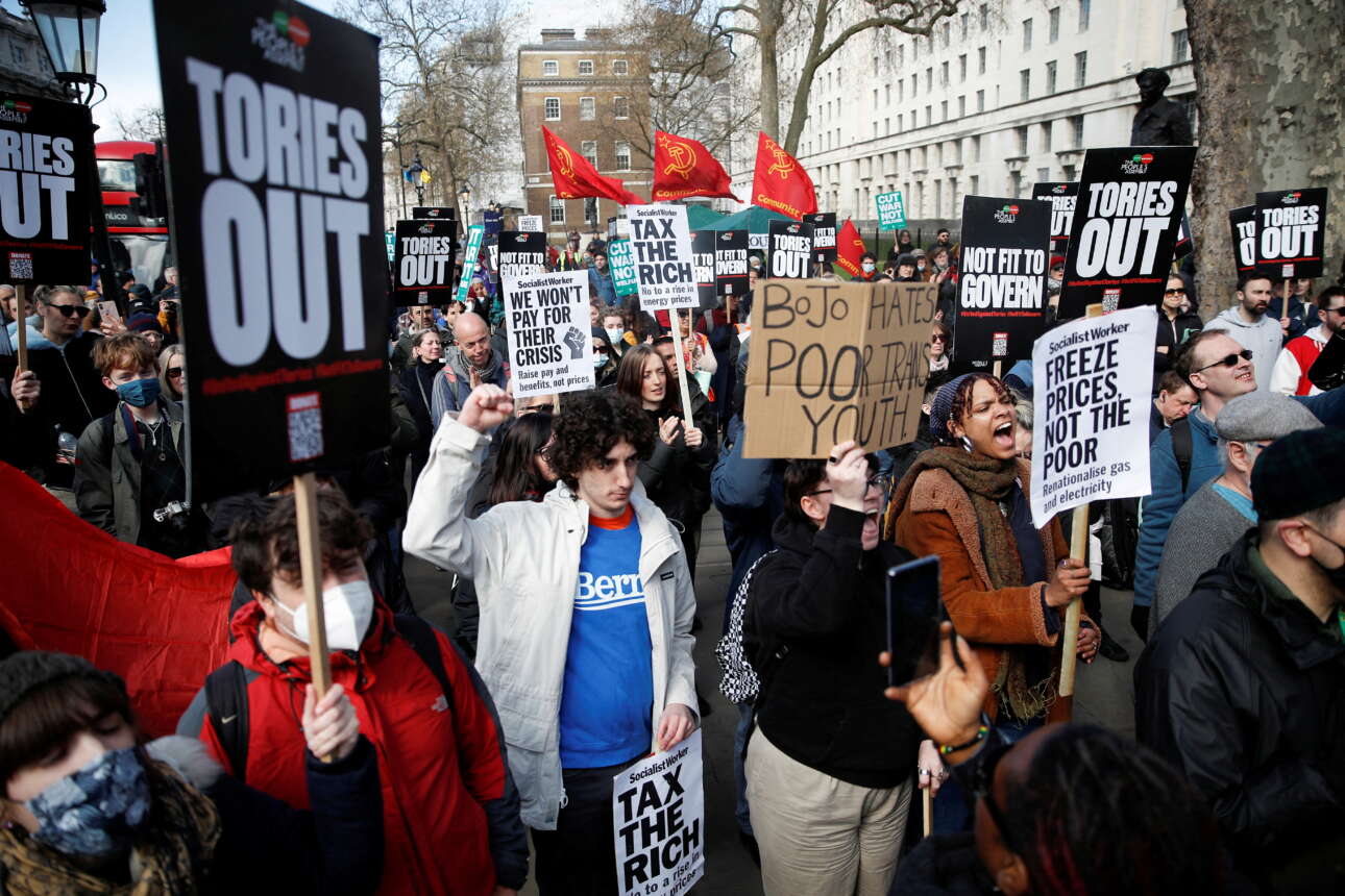 Η αλματώδης αύξηση του κόστους ζωής στη Βρετανία έχει βγάλει τους πολίτες στους δρόμους καθώς πληθαίνουν οι διαμαρτυρίες για την πολιτική του Μπόρις Τζόνσον.