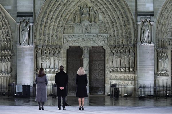 Και ευχαρίστησε όλους όσους συνέβαλαν για να επιστρέψει και πάλι στον κόσμο. Λίγη ώρα νωρίτερα η Notre Dame είχε φωτιστεί με ένα τεράστιο MERCI, το «ευχαριστώ» σε πολλές γλώσσες του κοσμου, για εκείνους που την έσωσαν από τη φωτιά και όσους εργάστηκαν για να την παραδώσουν και πάλι στην ανθρωπότητα.