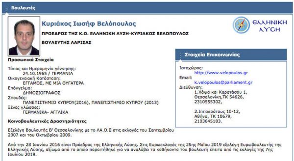 To Κυπριακό Πρακτορείο Ειδήσεων παρέθεσε και το απόσπασμα από το βιογραφικό του κ. Βελόπουλου: