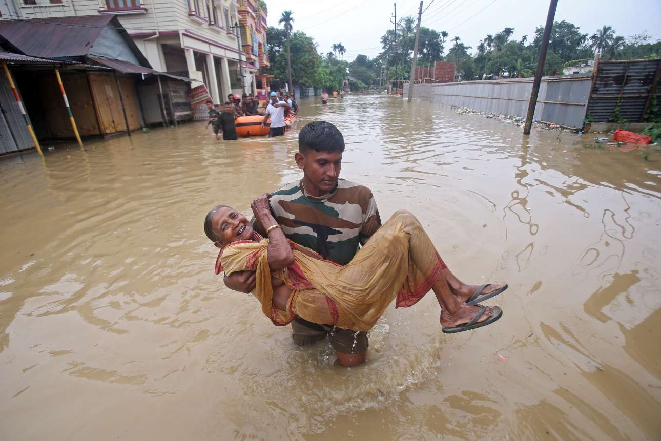 Στην Ινδία, στο κρατίδιο Ασάμ, τουλάχιστον 1,7 εκατομμύρια άνθρωποι εγκατέλειψαν τις εστίες τους ενώ πάνω από 20 είναι οι νεκροί. Δύο εκατομμύρια εγκατέλειψαν τις εστίες τους και στο γειτονικό κρατίδιο Μπιχάρ, αναφέρει το BBC.