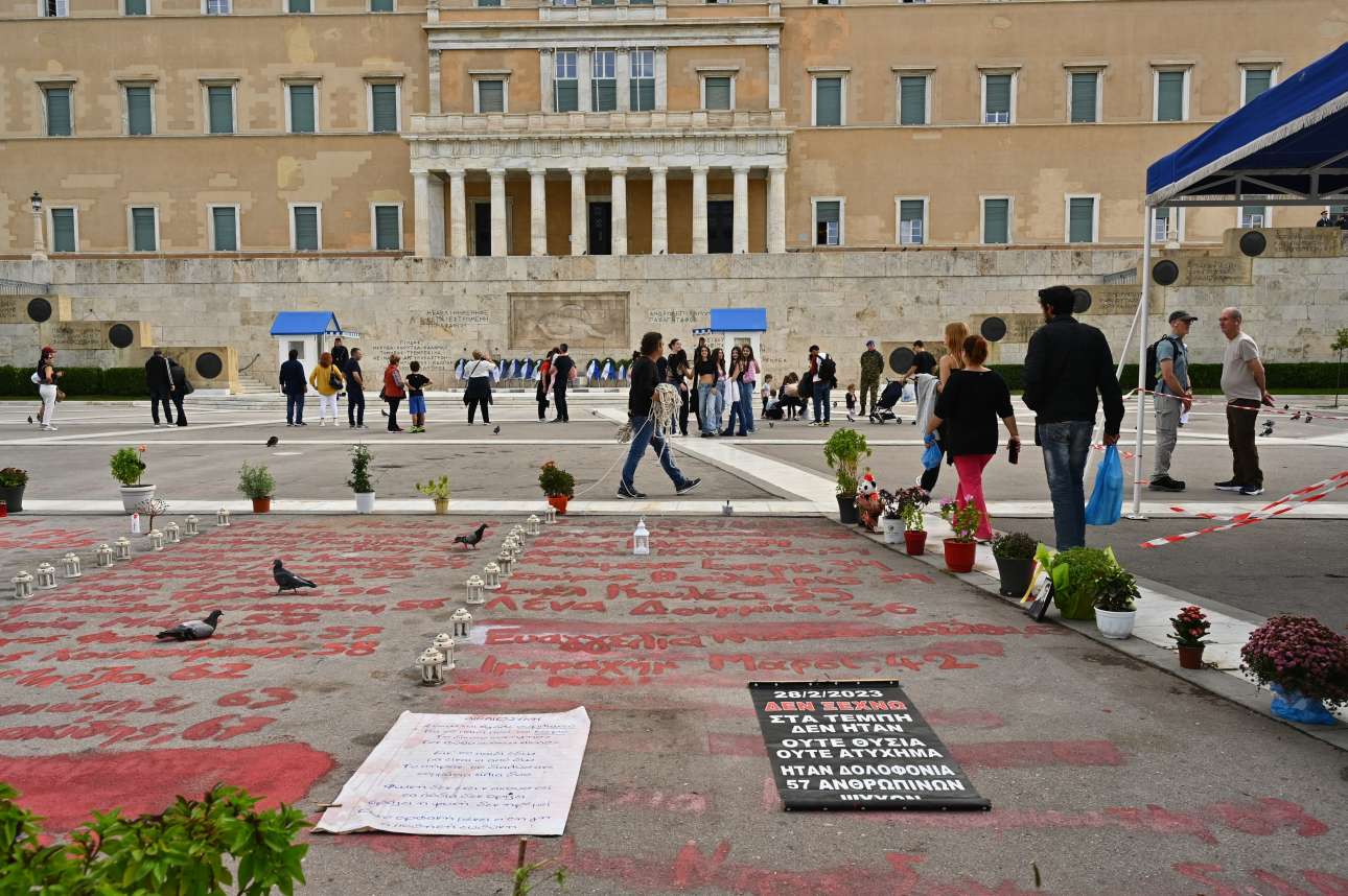 Οι εξέδρες των επισήμων στην Αθήνα, επελέγη αυτή τη φορά -σε αντίθεση με ό,τι είχε γίνει στη στρατιωτική παρέλαση της 25ης Μαρτίου- να τοποθετηθούν δεξιά και αριστερά των ονομάτων των 57 νεκρών της τραγωδίας στα Τέμπη – εκεί όπου το βράδυ της Κυριακής η Ζωή Κωνσταντοπούλου μαζί με τον εντολέα της, πρώην απεργό πείνας, Πάνο Ρούτσι και ομάδα αλληλέγγυων προέβησαν σε εργασίες καθαρισμού με σκούπες και φαράσια.