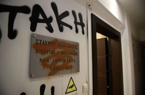 Αυτό το τελευταίο συνέβη με τον Σταύρο Καλαφάτη, του οποίου το πολιτικό γραφείο έγινε στόχος βανδάλων, κατά τα φαινόμενα οπαδών του ΠΑΟΚ, νωρίς το βράδυ της Τετάρτης. Αγνωστοι εισέβαλαν στο γραφείο του βουλευτή Α’ Θεσσαλονίκης –εξελέγη τέταρτος με 31.685 σταυρούς– έγραψαν υβριστικά συνθήματα κατά του Κυριάκου Μητσοτάκη και του υφυπουργού Αθλητισμού Λευτέρη Αυγενάκη και πέταξαν φέιγ βολάν με μηνύματα κατά του Πρωθυπουργού της χώρας. Αντίστοιχες σκηνές εκτυλίχθηκαν και στο γραφείο της επίσης βουλευτού Α’ Θεσσαλονίκης –εξελέγη τρίτη με 32.337 σταυρούς– Ελενας Ράπτη.