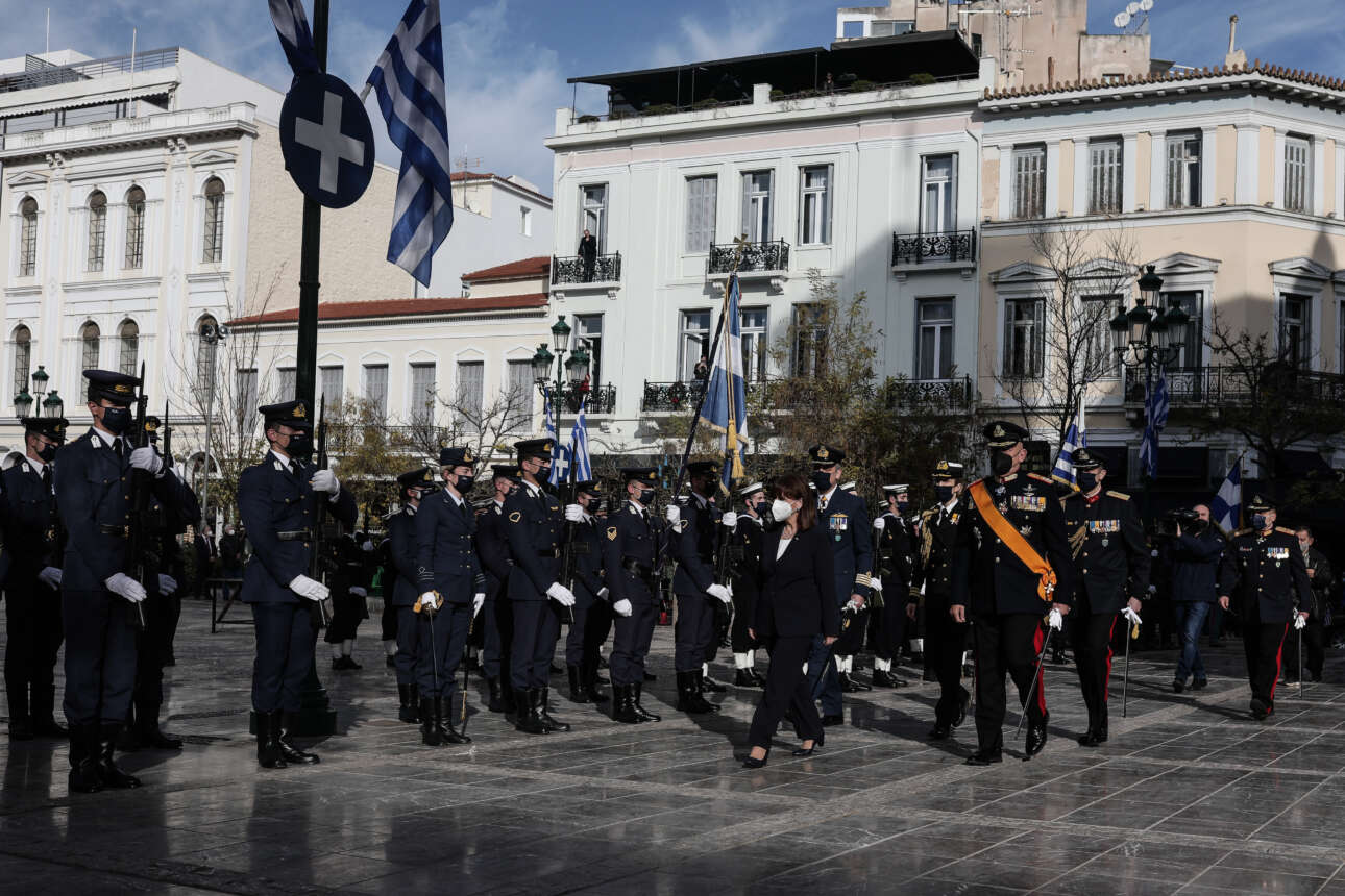 Παρέστησαν υπουργοί, βουλευτές, ο πρόεδρος του ΚΙΝΑΛ, Νίκος Ανδρουλάκης, ο περιφερειάρχης Αττικής, Γιώργος Πατούλης, ο δήμαρχος Αθηναίων, Κώστας Μπακογιάννης, ο αρχηγός ΓΕΕΘΑ, στρατηγός Κωνσταντίνος Φλώρος, οι αρχηγοί των Γενικών Επιτελείων Στρατού, Αεροπορίας και Ναυτικού, καθώς και οι αρχηγοί των Σωμάτων Ασφαλείας.