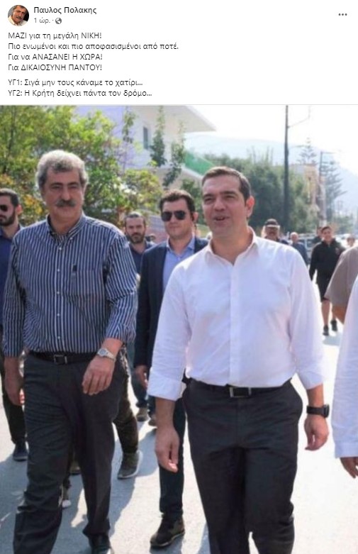 Λίγη ώρα μετά την ολοκλήρωση της συνεδρίασης της Πολιτικής Γραμματείας, ο Παύλος Πολάκης έκανε ένα πρώτο σχόλιο για τις εξελίξεις, κατά την προσφιλή του μέθοδο: αναρτώντας post στο Facebook.