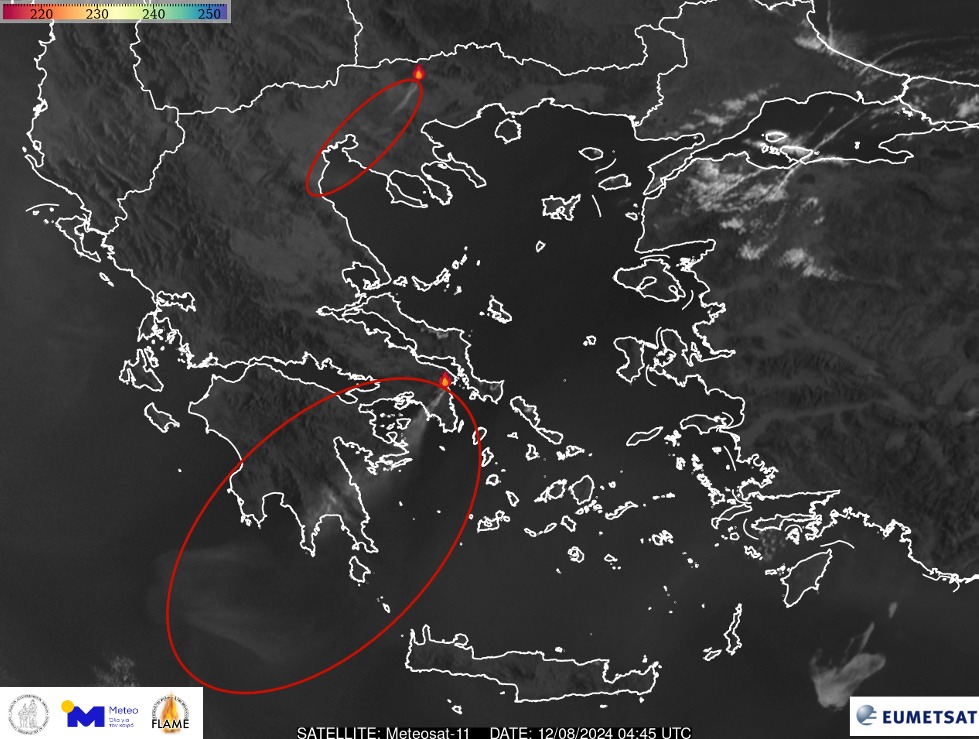 »Στη δορυφορική εικόνα είναι επίσης εμφανής και η διασπορά του καπνού από τη δασική πυρκαγιά στο Μενοίκιον Όρος του νομού Σερρών».