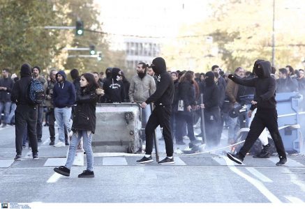 Εντύπωση προκάλεσε το γεγονός ότι τουλάχιστον μέχρι τη μία μετά το μεσημέρι η παρουσία δυνάμεων των ΜΑΤ στην περιοχή δεν ήταν ορατή, με τους νεαρούς κουκουλοφόρους να κινούνται ανεξέλεγκτοι.