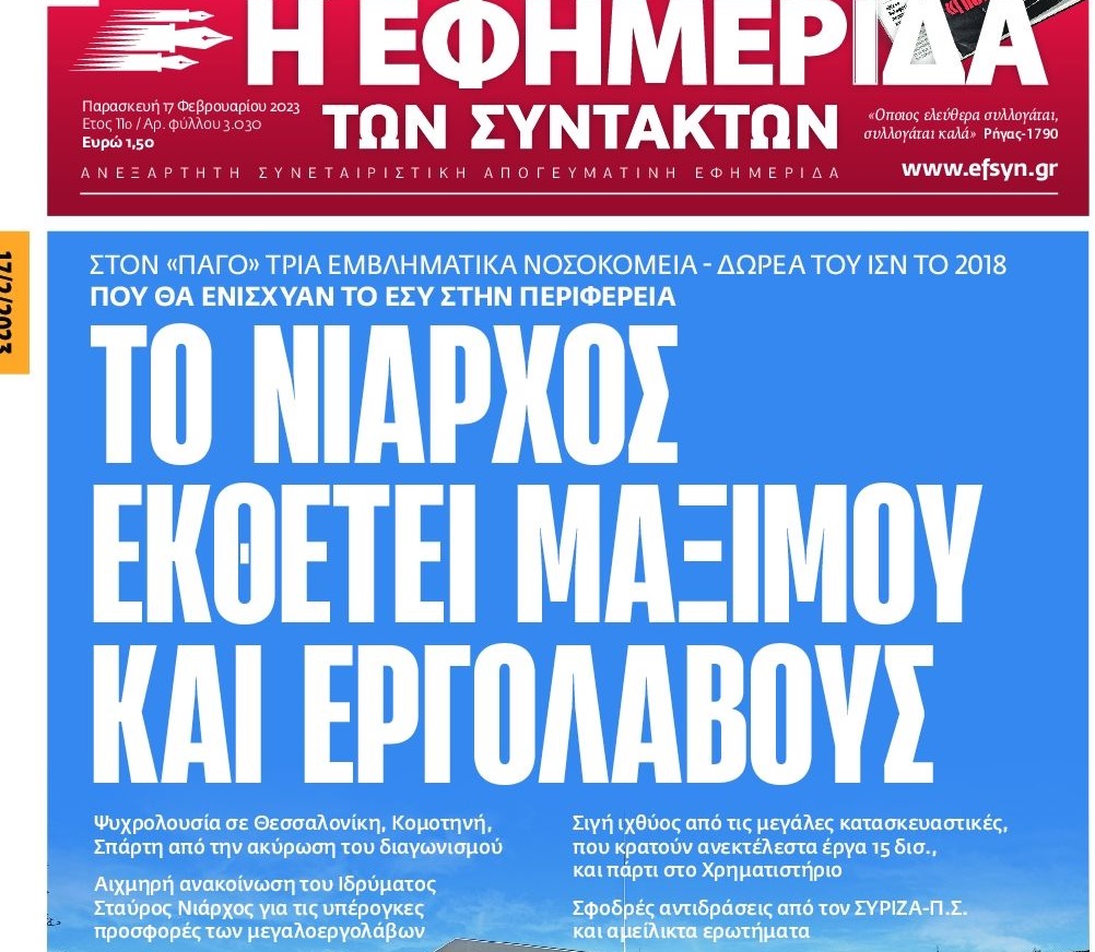 Η ανακοίνωση του Ιδρύματος Σταύρος Νιάρχος για την ακύρωση του διαγωνισμού για την κατασκευή του νέου Γενικού Νοσοκομείου Κομοτηνής ΙΣΝ, του Πανεπιστημιακού Παιδιατρικού Νοσοκομείου Θεσσαλονίκης ΙΣΝ, και του νέου Γενικού Νοσοκομείου Σπάρτης ΙΣΝ, λόγω προσφορων πολύ υψηλότερων -ακόμη και υπερδιπλάσιων- του οικονομικού αντικειμένου της δωρεάς του Ιδρύματος, πυροδότησε πλήθος αρνητικών σχολίων, ανάμεσά τους και από τον «πάντα έτοιμο» αντιπολιτευόμενο Τύπο που έσπευσε να προεξοφλήσει «οριστικό ναυάγιο» (δείτε κάτω το σχετικό πρωτοσέλιδο από την «Εφημερίδα των Συντακτών»).